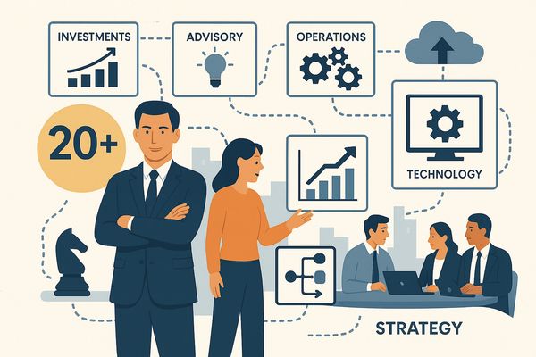 With 20+ years of experience across investments, advisory, operations, and technology, we act as the connective thread - translating business goals into platform strategy grounded in scalable infrastructure and powered by high-performing teams.